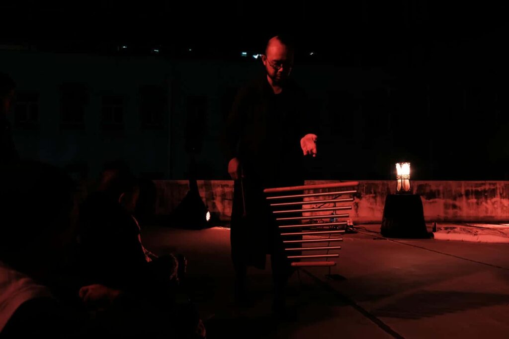 Introduction: A concert performance on the rooftop of the Art Garden, in which Hong Kong meditative musician Paul Yip, Macau poets M. Chow and Isaac Pereira, and local modern ballet dancer Tina Kan will carry out a joint creative venture crossing over the poetic words of Virginia Woolf, the poets’ recitals in their own words and the dancer’s choreography moving through the instrumental vibrations coming from the musician. The performance will be accompanied by shamanic drums, brass bowls, gongs, celestial drums, dinshaws and Indian organs, taking you on a deep spiritual journey.