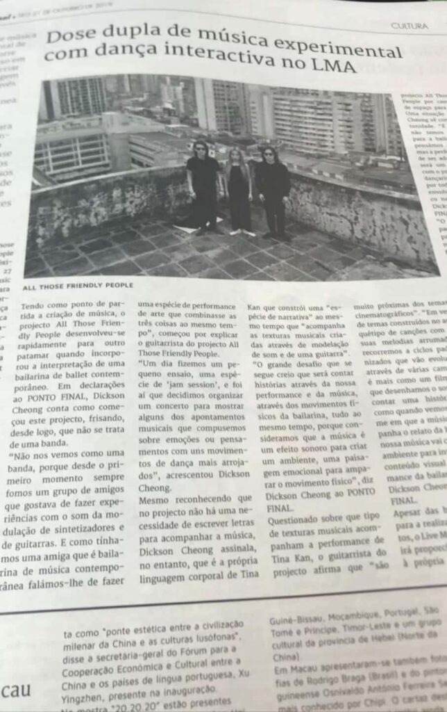 All those friendly people 系列是Tina 由北京回澳後發起的創作概念,作品方式是與各界藝術家,音樂人及團體共同創作並呈現,作品風格以多元文化配合,Tina 並在其中擔任總導演,策劃,編導編舞及演員,包括宣傳片導演及舞台製作。與Tina 共同合作的藝術團體包括-BOK Festival劇場搏劇場 ,LIVE Music Association現場音樂協會,澳門文化局資助澳門新女性發展協會《女悅節|二元》,澳門文化局資助 四維空間主辦 T劇場合辦-獨立構造【Creating in Silence】等。